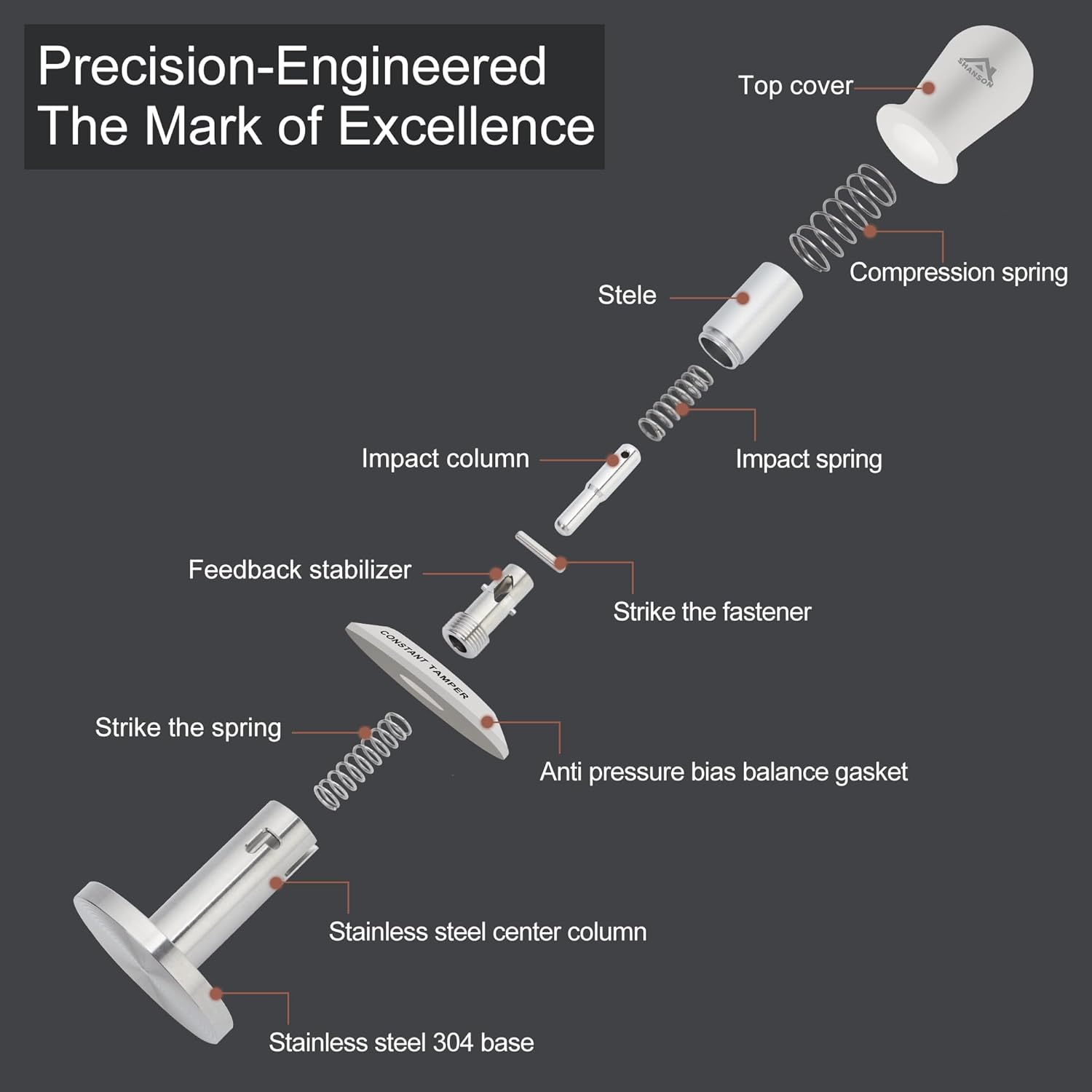 - 【Professional 3 Spring Pressure System】Compression Spring - Delivers even pressure throughout the entire tamping process;Tapping Feedback Spring - Provides an obvious sound when optimal pressure is reached;Impact Damping Spring - Ensures smooth, bounce-free retraction for rapid reuse.