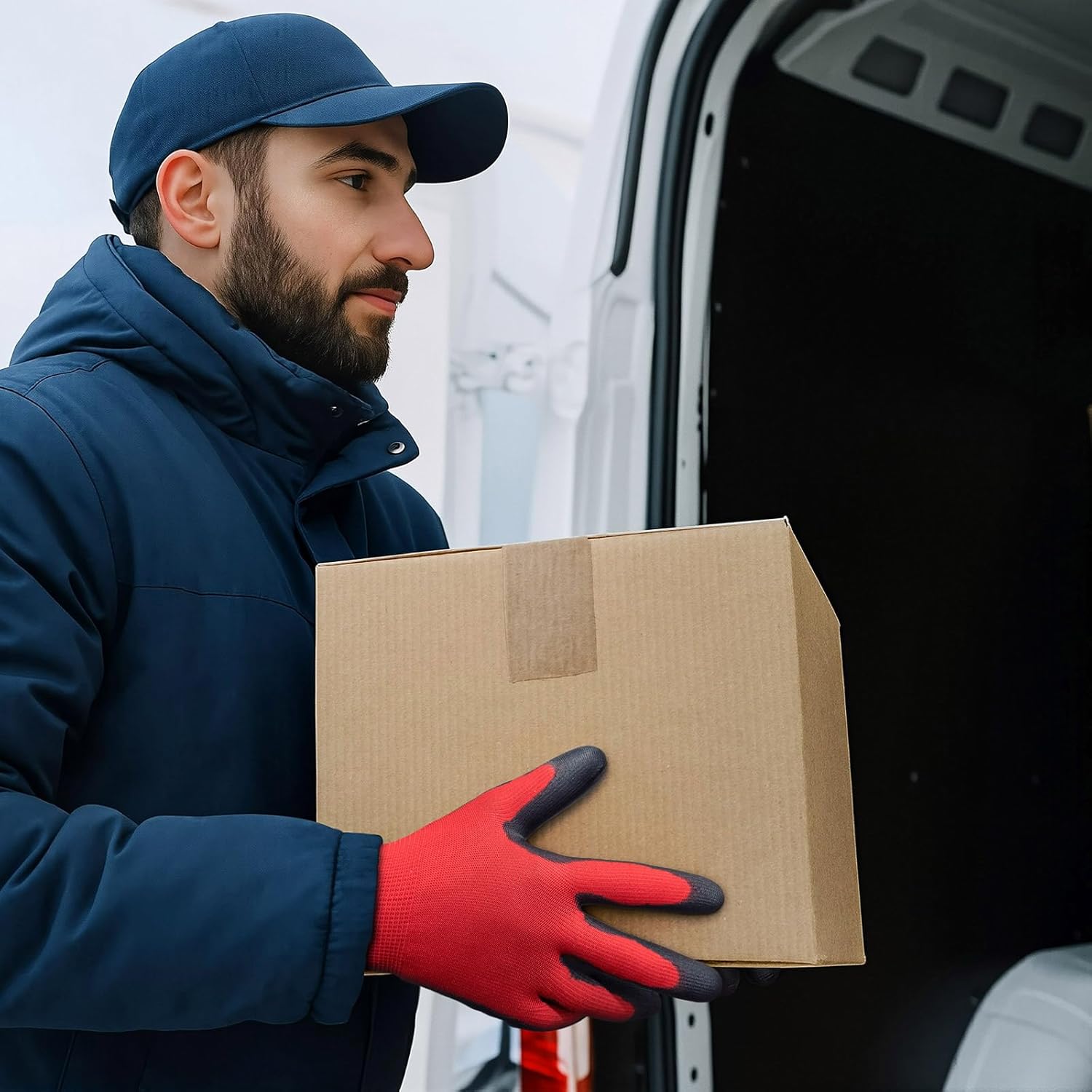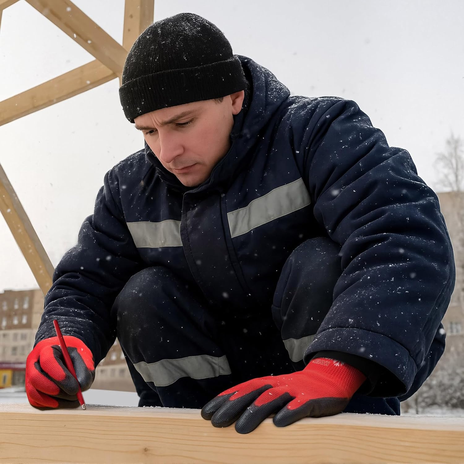 KAYGO Winter Work Gloves for Men and Women, 12 Pairs Thermal Insulated Safety Work Gloves PU Coated, Smooth Grip on Palm & Fingers,Ideal for Freezer Work,Red,XL