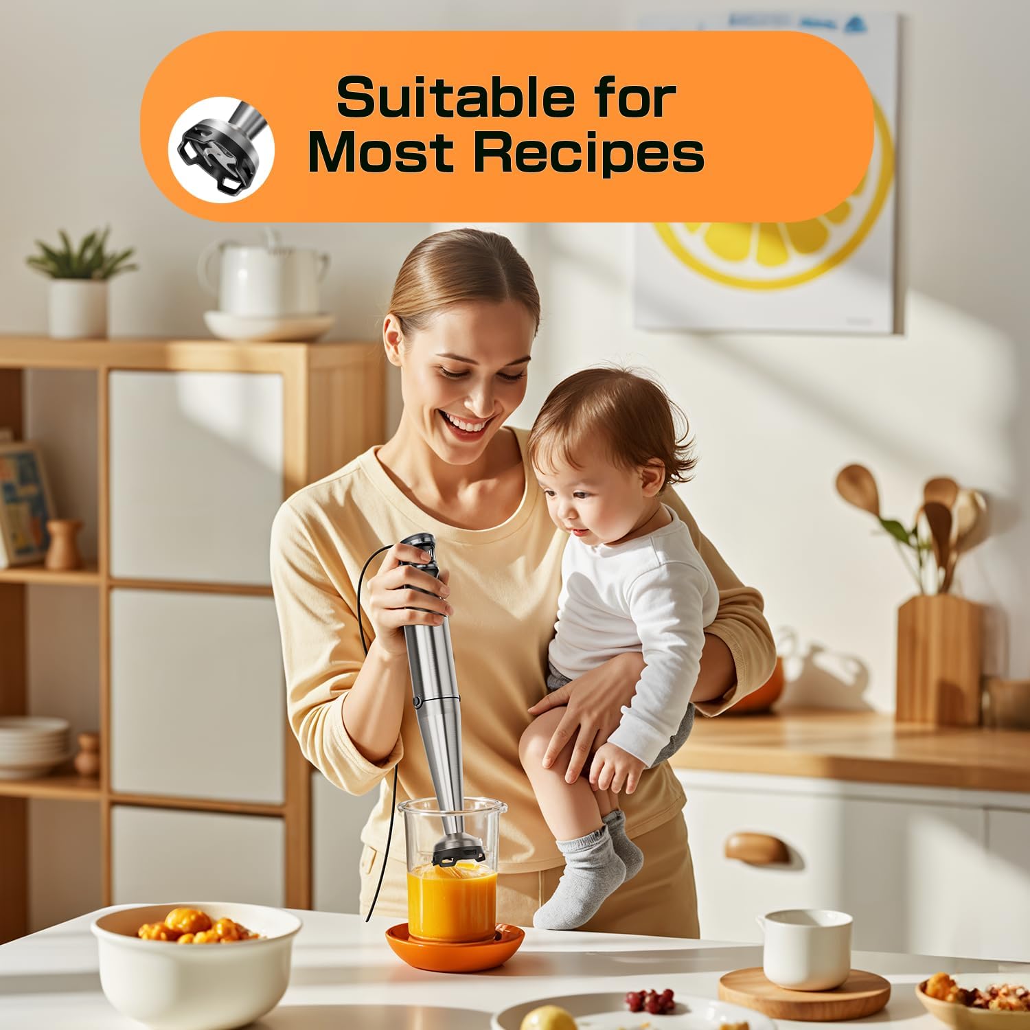 - Effortless Clean-Up, Scratch-Free: Features a unique food-grade nylon blade guard designed to minimize suction, preventing scratches on your pots and pans and keeping splashes at bay for a cleaner kitchen and hassle-free clean-up.