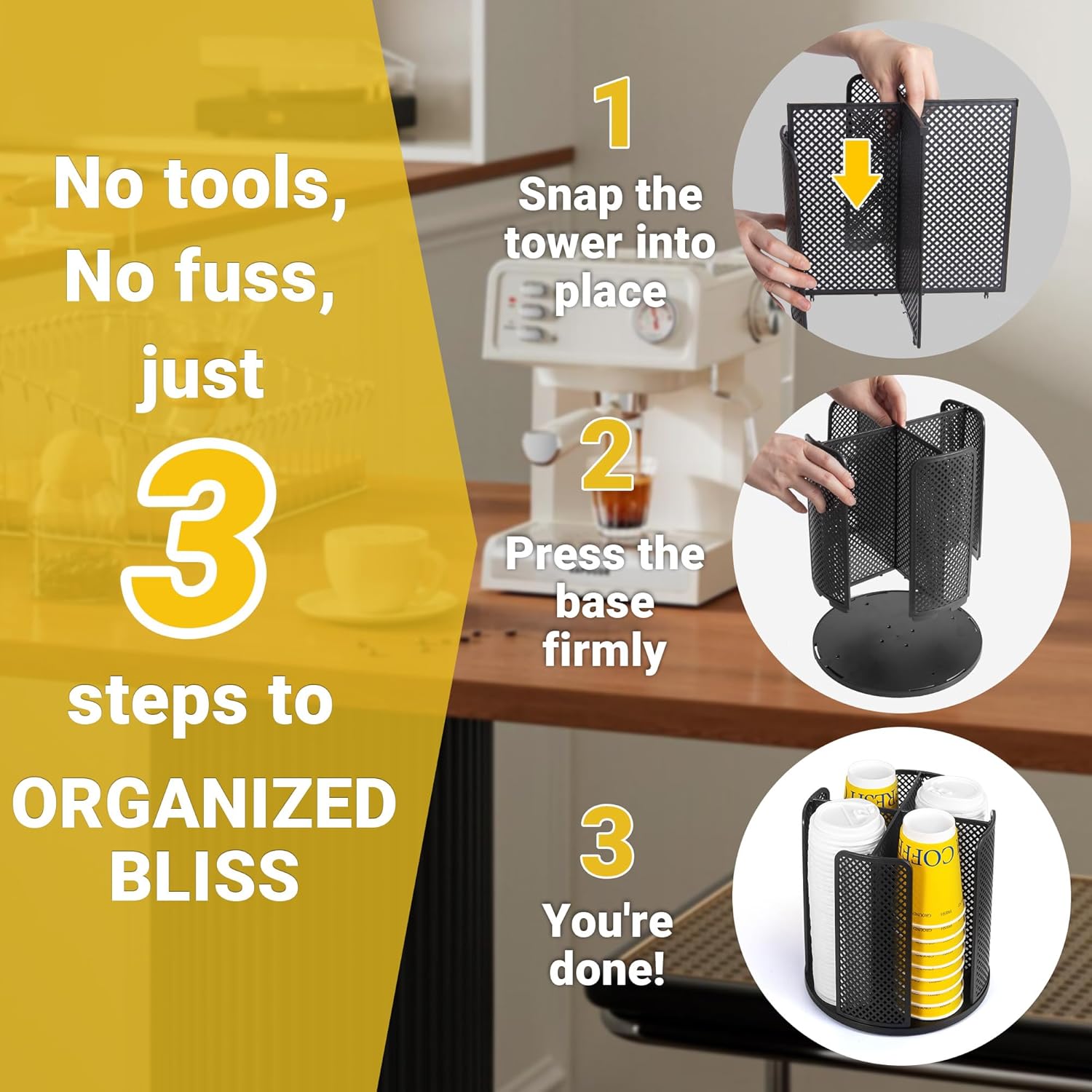 - Effortless 360° Rotation: Smooth-spinning tray provides instant, one-handed access to cups and lids in this coffee cup dispenser