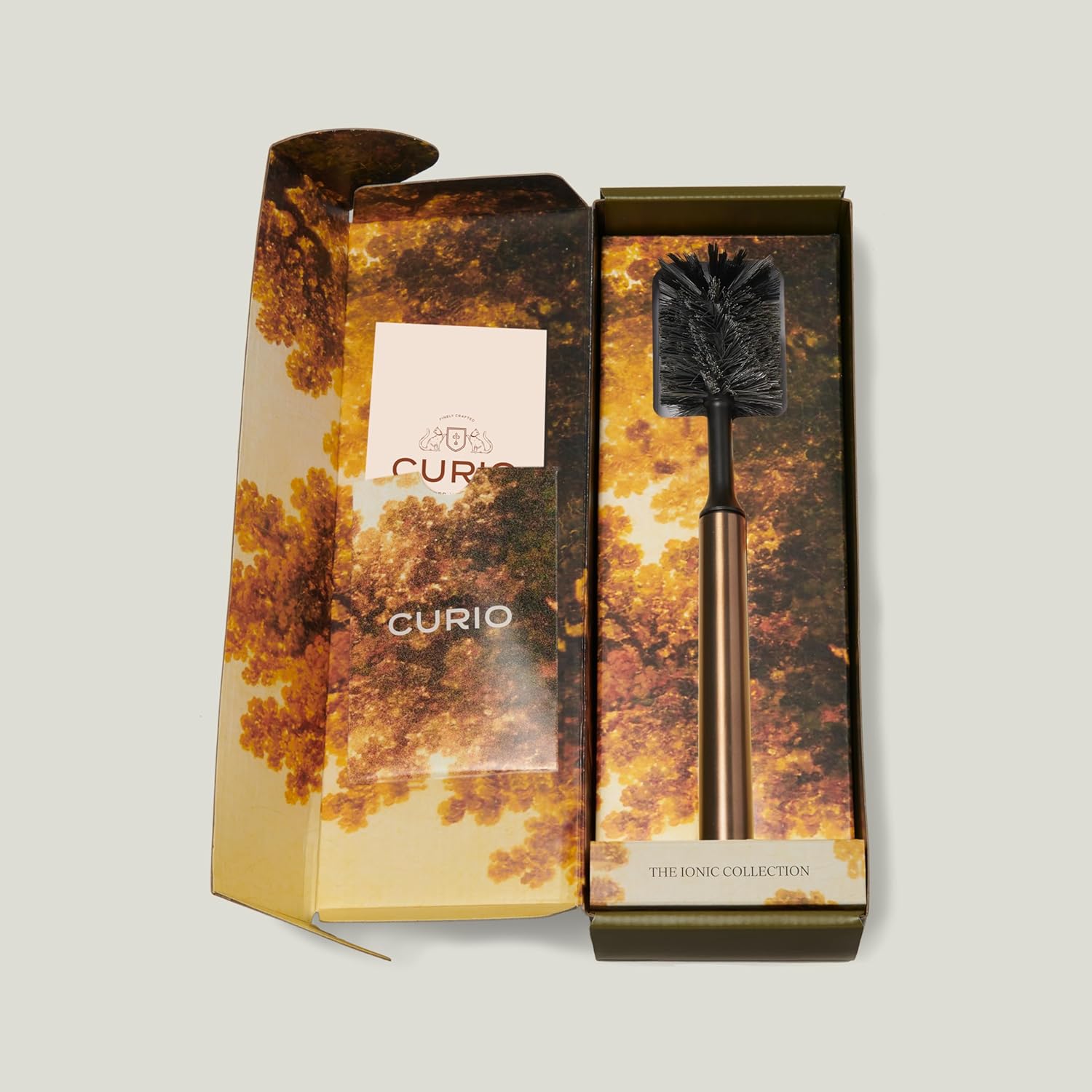 Ionic Bottle Brush, Magnetized to Stand Upright, Stainless Steel with Replaceable Head, Bronze
