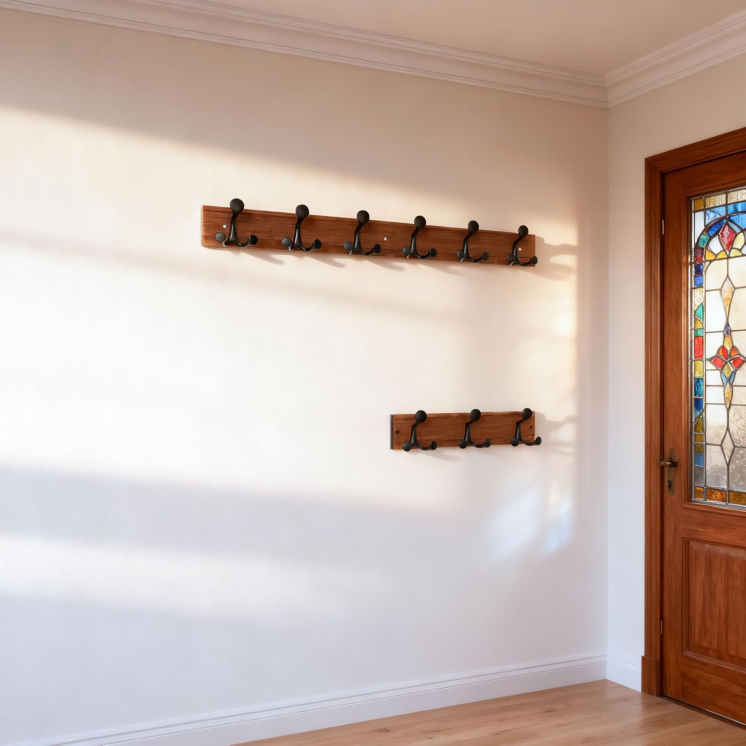 SKOLOO 36-Inch Wood Coat Rack Wall Mount with 6 Triple Hooks - Ideal for Family Entrances, Classrooms, and Pet Supplies Storage - Perfect Coat Hooks for Wall,Mahogany (Sapele)