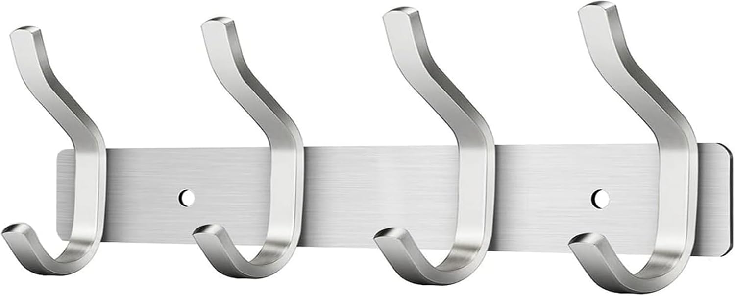 Wall Hooks Heavy Duty, 12 Inch Coat Rack Wall Mount with 4 Hooks, Silver Wall Hooks for Hanging Backpack, Bag, Purse, Clothes, Hat, Coat, Towel | Entryway & Bathroom Storage Organization Hanger