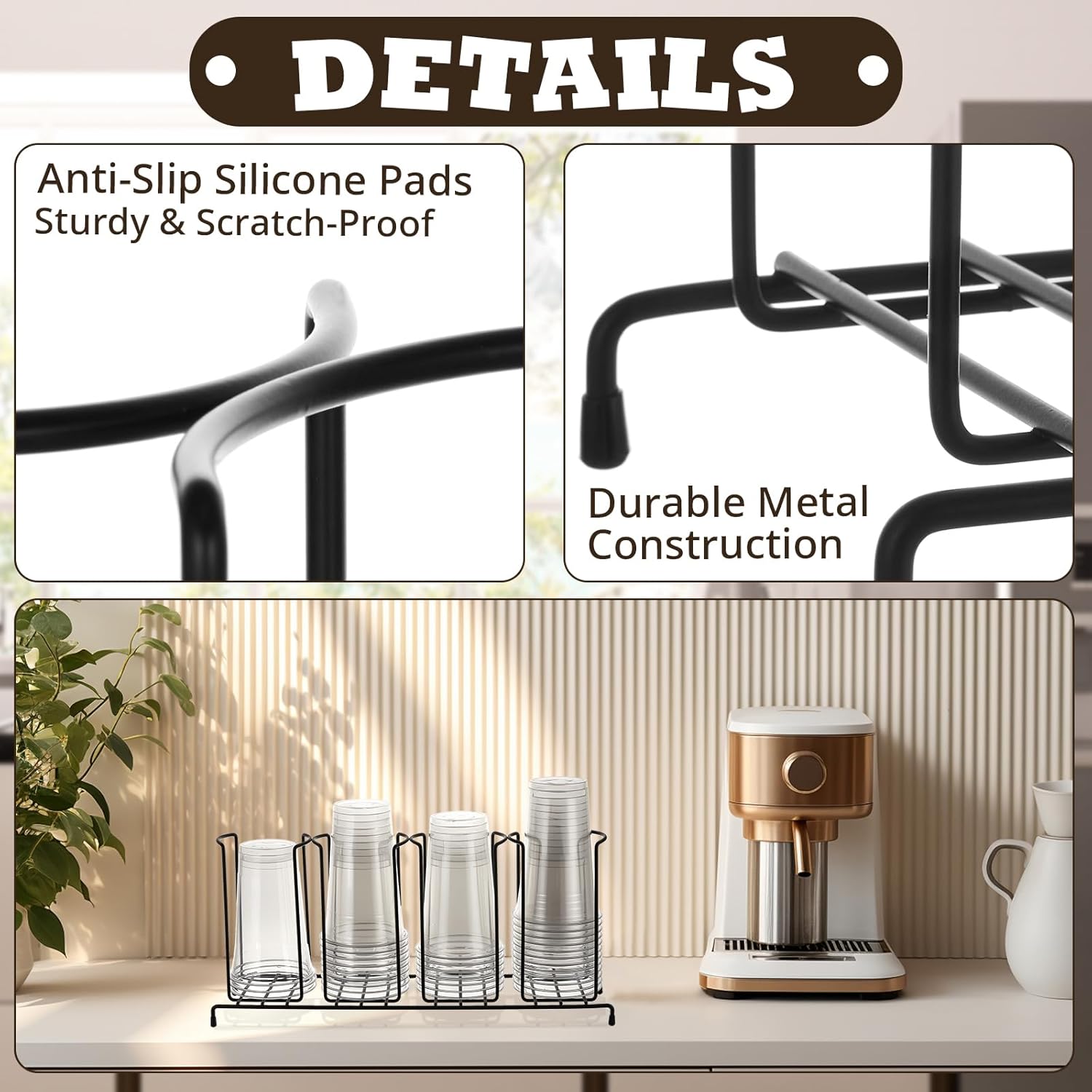 - Durable Metal Construction: crafted from robust metal, this cup organizer promises exceptional durability; Its meticulous craftsmanship ensures it withstands daily use while retaining its structural integrity; This coffee cup dispenser will serve as your reliable organization ally for years, regardless of how hectic your coffee shop or kitchen gets